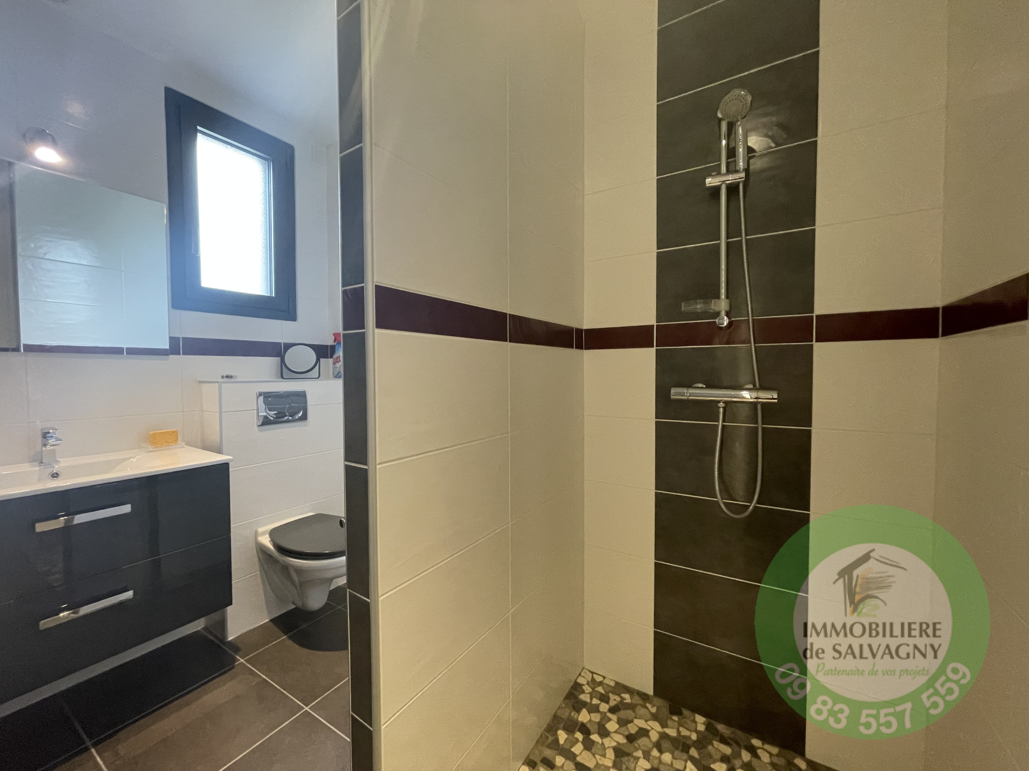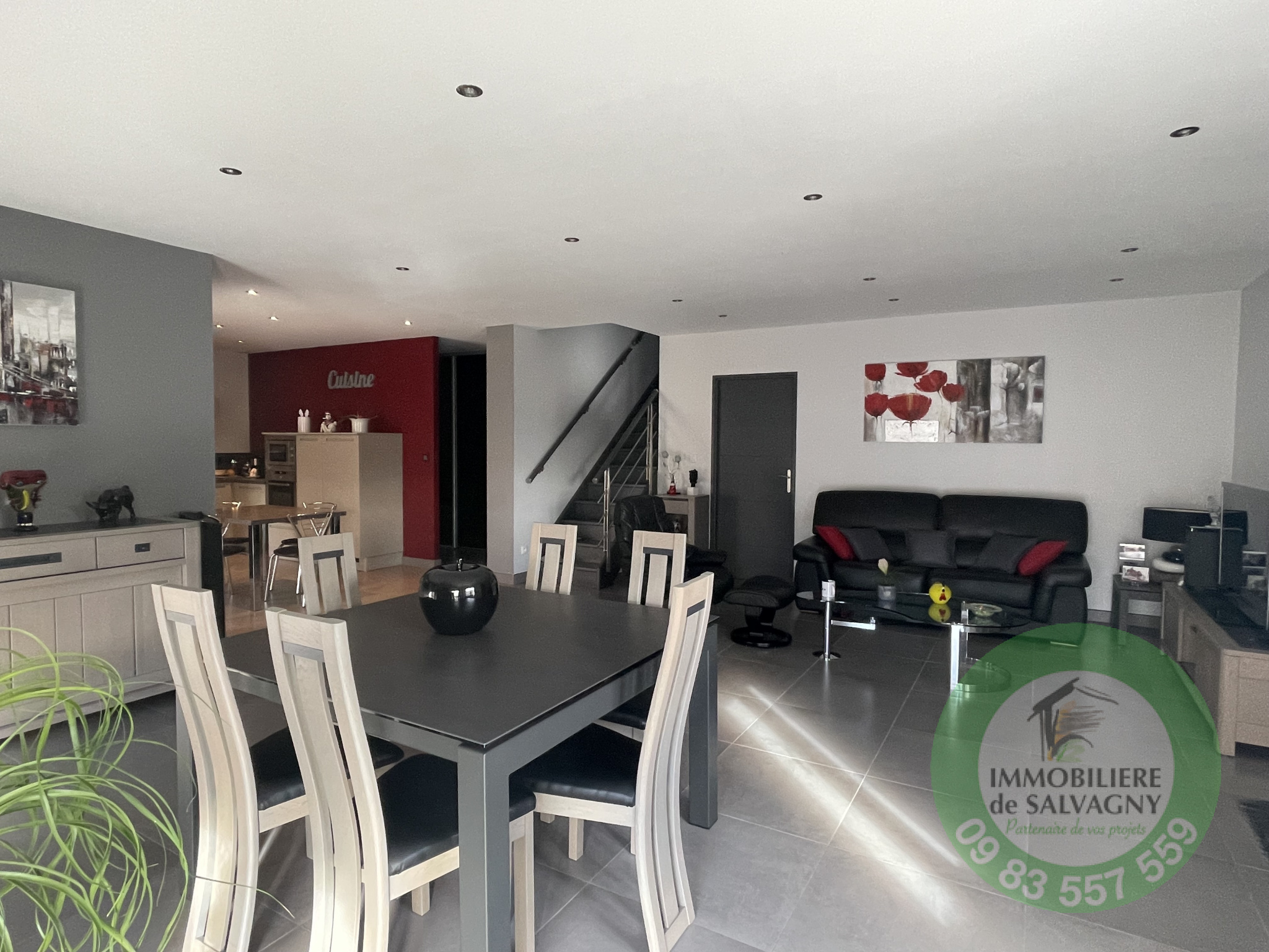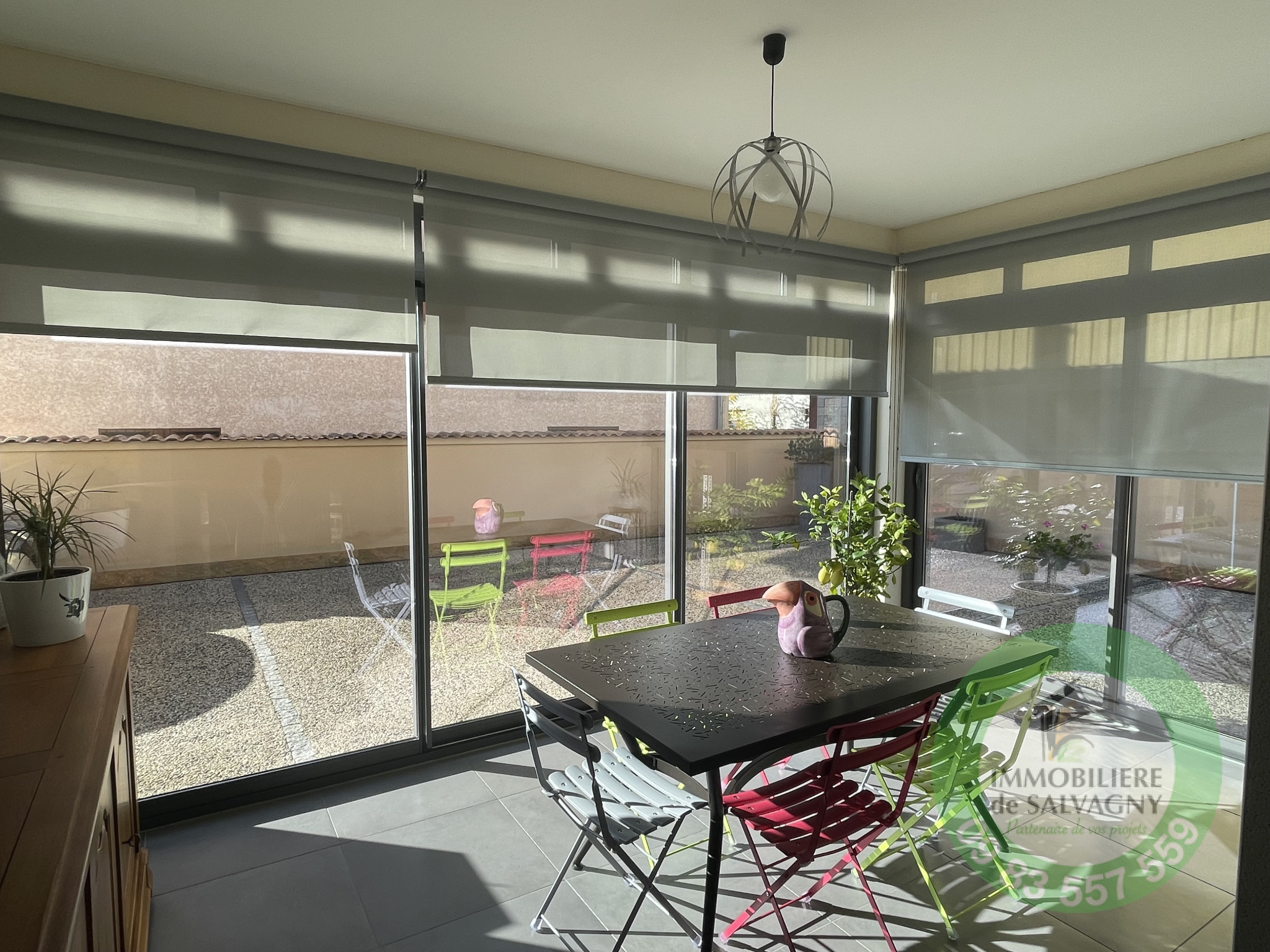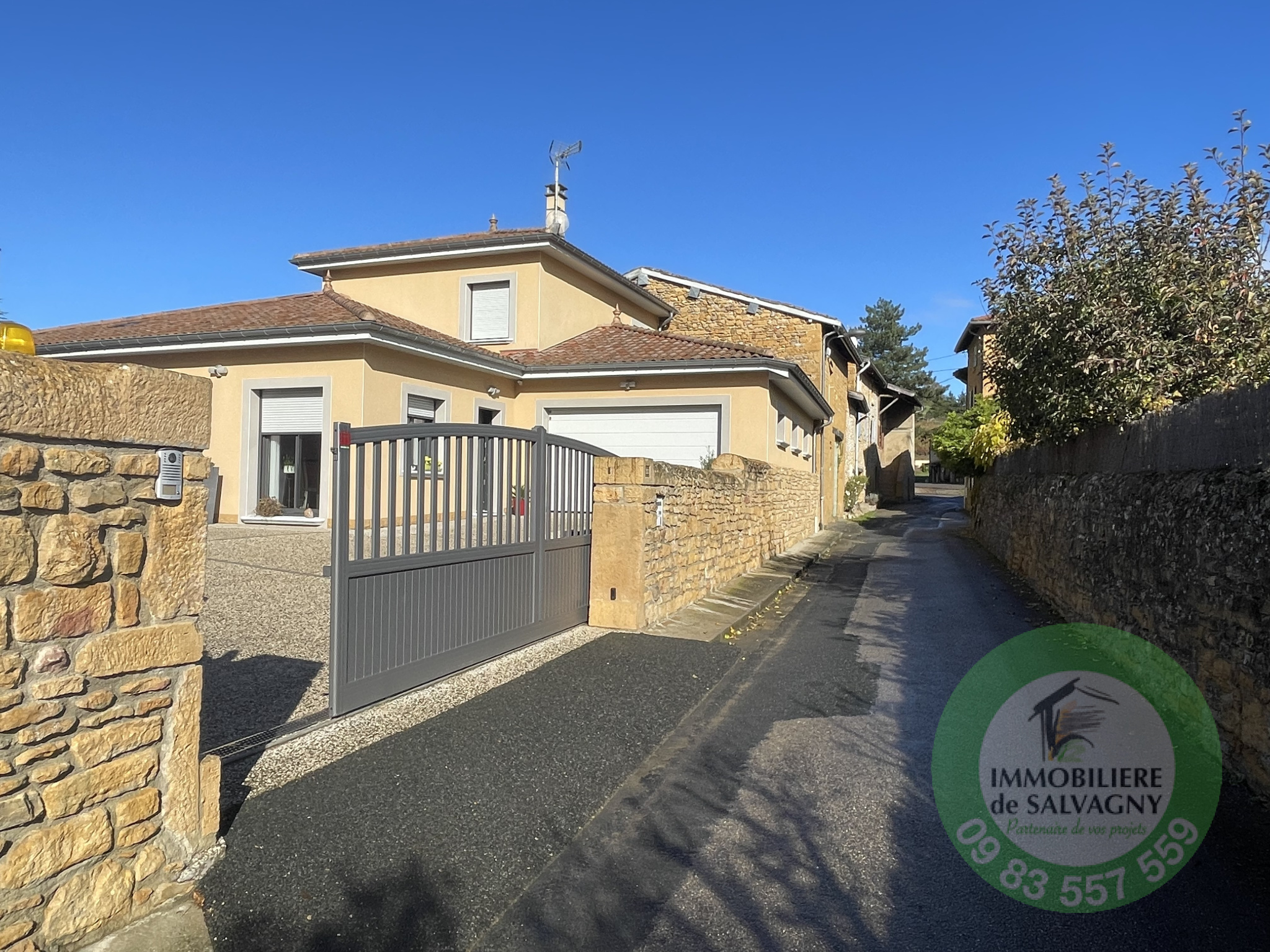 Sur les hauteurs de Châtillon d'Azergues, au calme, maison de hameau de 150 m2 habitables récente et contemporaine. De plain-pied : une grande pièce de vie lumineuse, une cuisine équipée type US ouvrant également sur véranda, un coin nuit parent composé d'une chambre de 15 m2 avec placards et salle d'eau, WC séparé. A l'étage : le palier dessert deux chambres et une deuxième salle d'eau avec WC. En complément : une buanderie de 15 m2 avec nombreux rangements, un cellier, une cave à vin et un garage de 59 m2. Le tout sur un terrain clos de 430 m2. Superbes prestations : charpente traditionnelle, volets électriques, alarme, visiophone, aspirations centralisée, adoucisseur d'eau, VMC double flux... DPE : C. Renseignements et visites : IMMOBILIERE DE SALVAGNY - 09 83 557 559